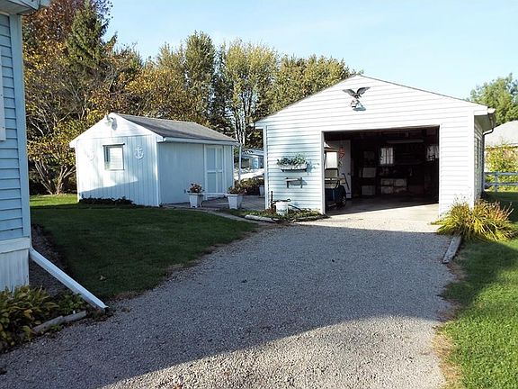 Wonderful open plan with large kitchen with oak cabinets galore, breakfast bar, plus dining room. Well maintained and neutral colors. Dramatic hall bath. Large bedrooms. Beautiful treed lot with garage and storage building. Located close to rental boat docks, and lots of fun on Turkey Foot island.New flooring and many upgrades. Back deck and back patio ready for the cook out. See Furniture list for furniture that is available.