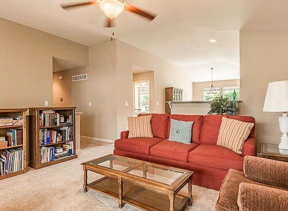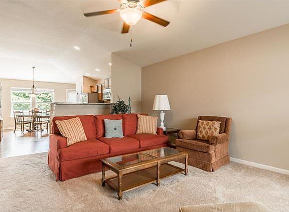 WOW! Move right into this NEWER & METICULOUSLY MAINTAINED VILLA w/ GORGEOUS VIEWS of greenspace. All main floor living at its best! 2 LARGE bedrooms adjoin a full hall bathroom. The secluded master suite features great views of the backyard! Walk-in closet & luxurious en-suite w/ double vanity, deep tub, & walk-in shower! The kitchen is equipped w/ granite counters, center island, ss appliances (NEW DISHWASHER), eating area & access to back deck. FULL unfinished basement; perfect for storage or choose to finish!