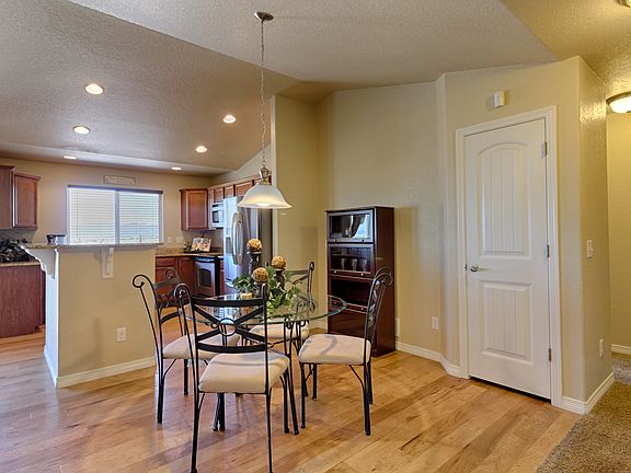 Beautiful, dynamically open ranch floor plan w/ 3 bedrooms on the main level, finished basement & 3-car garage has amazing views of Pikes Peak & no rear neighbors. A wide tile-floored entry invites you into the space. The open concept floorplan combines your living, dining, & kitchen space. Lovely eat-in kitchen w/ maple cabinets, slab granite countertops, stainless appliances, & island w/ a breakfast bar. The living room has vaulted ceilings & wide-planked hardwood floors that carry throughout the entire great room. Walk out to the back yard w/ privacy stone wall, oversized patio & small grass area for pets. There is little maintenance to do in the back, instead, enjoy the views of the mountain range as you grill. Back inside, the master bedroom has vaulted ceilings, an attached 5-piece bathroom w/ tile floors, double vanity sink, garden tub, free standing shower and walk-in closet. Main level laundry will be a life saver! Downstairs, the open family room allows space for recreation. There are two other bedrooms in the basement and a full bathroom w/ tile floor. You will love the open and fresh floorplan. Why wait to build, this is the one you have been waiting for! Such an easy drive to the Powers corridor or to the new shopping in Falcon. Also, easy access to Woodmen & then 1-25. Cross-commuters will enjoy this location & proximity to all the new growth.