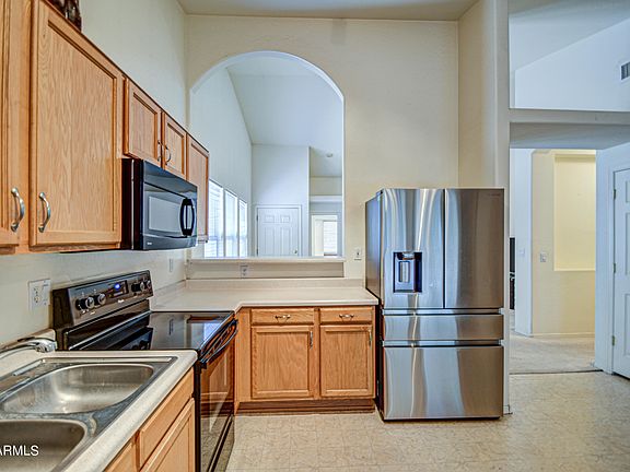 Seize the opportunity in Gold Canyon! This charming 3-bedroom, 2-bath home, located in a tranquil cul-de-sac, boasts no HOA fees. The interior features a vaulted ceiling and a split floor plan, with a spacious primary suite that includes a large walk-in closet. The eat-in kitchen opens to the backyard through a sliding glass door. Enjoy outdoor living on the covered rear patio, surrounded by a block wall and view fencing. Recent upgrades include a new HVAC system and exterior paint in 2018. Washer and dryer are included. Conveniently close to hiking trails and a golf resort. Don't miss out!