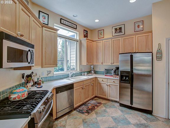 Comfortable, quiet townhome tucked between Tualatin and Horizon High Schools. High ceilings allow lots of natural light to flood in to the living spaces. The primary bedroom suite on the main level boasts double closets and double bathroom vanities. The spacious bedroom suite on the second floor opens into the upstairs loft. Additional room on the main level could be a 3rd bedroom or an office/den. New furnace in 2021. Easy access to both 1-5 and 205. Close to Ibach Park. No HOA!