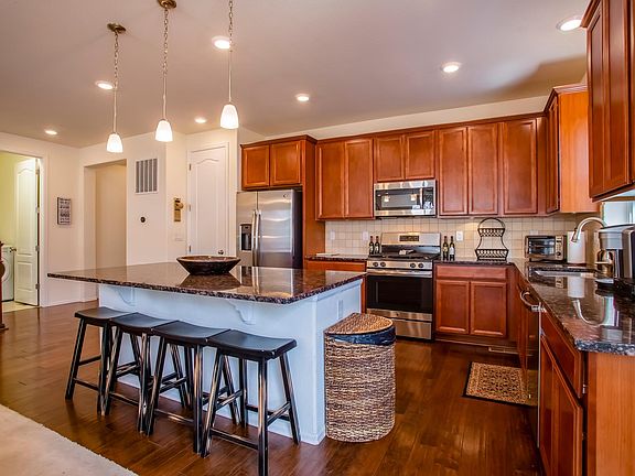 Recent new build 3BR/2BA executive ranch home, meticulously maintained, FULLY-FURNISHED with modern decor throughout. Large great room that opens to the kitchen, dining, and living areas, featuring a 64 inch smart TV. Kitchen has all granite countertops, spacious island, pantry and lots of cupboard space. Master suite with attached bathroom and dual granite countertop vanities, large tub, separate shower and walk-in closet. Two additional bedrooms with shared full bathroom with tub and shower. One bedroom has queen bed and bedroom set with large closet. The other bedroom serves as an office with an automated standing desk, three computer monitors, office chair and office furniture included. You'll also find another queen bedroom set, along with a sitting area, in the unfinished basement for additional sleeping and lounging space. Workout area in basement as well. Relax in the new, custom backyard space featuring a large covered patio with wood-stamped concrete, flagstone open area, maintenance free turf, surrounded my large river rocks as the border and accent lighting. Welcome home!