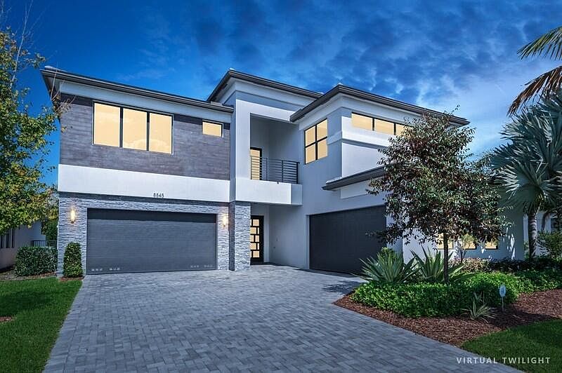 The lowest priced Maldives model with a pool available in Lotus! Your search for a truly turn-key luxury home in Lotus is over. This rarely available Maldives model is the largest model in Lotus and boasts over 5300sqft, five bedrooms, five bathrooms and two half baths. As you enter the bright and airy home you are immediately struck by the vaulted ceilings and designer finishes. The open floorpan first story accommodates spacious living and formal dining rooms, as well as a game room, bedroom with ensuite bath, a refrigerated 146-bottle built-in wine refrigerator, and eat-in kitchen. The chef's kitchen includes upgrades such as Wolf/Subzero appliances, gas range, custom cabinetry, quartz countertops, and a 10' waterfall island. The spacious living room is flanked by oversized sliding glass doors opening onto the backyard oasis including an expansive patio with motorized retractable screens, swimming pool, artificial turf, and putting green. The lot is extended an additional 20' back, amplifying the canal and preserve views and underscoring the complete privacy of the lot with no neighbors behind the home. The striking wood staircase leads to the second floor with a large loft area acting as a second living room, three guest rooms with ensuite baths, media room, laundry room, covered balcony with retractable screens, and a massive primary suite. The primary suite is located away from the other bedrooms allowing for additional privacy and boasts two generously built-out walk-in closets and a spacious bathroom complete with dual sinks, a makeup vanity, oversized shower, and separate soaking tub. The gorgeous home includes a four-car garage and prodigious drivewayallowing for ample parking options. Lotus is a highly coveted, resort-style community located in an A-rated school district. Amenities include indoor and outdoor basketball courts, tennis and pickle ball courts, a fitness center, game room, cafe, pool, pro-shop and more. Vacation where you live!