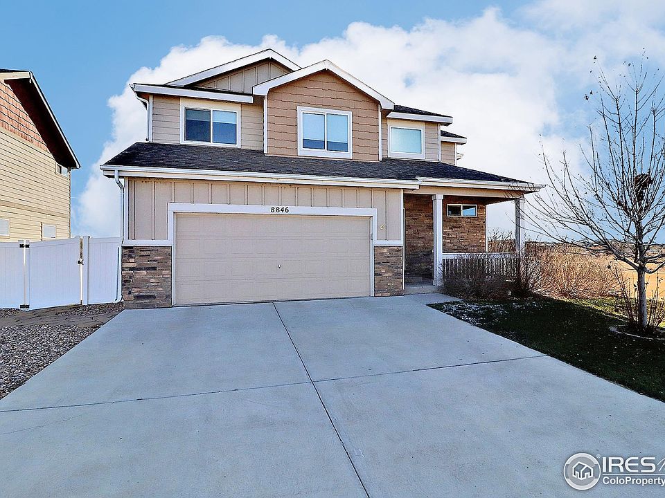 Terrific Two-story in The Trails at Sheep Draw! Four bedrooms, four baths, finished walk-out basement, all appliances included! Spacious primary suite with huge walk-in closet, spectacular mountain views and backs up to walking trail! Plus a fully fenced yard with sprinkler system and a 3-car tandem garage! Don't miss this one-enjoy the view!