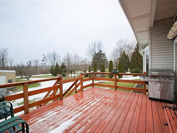 No showings until Open House Saturday, March 7th 1-3pm. This 3 bedroom, 2 full bath ranch is an outstanding value! Designed around a "Great Room" concept with cathedral ceilings and spectacular views, this home offers it's owner plenty of "space". Huge Kitchen with breakfast bar and appliances. Central air conditioning (3 yrs old). Enjoy a cup of coffee from the large (elevated) rear deck as you look out over acres of woodlands. Full extra deep, extra dry basement. Attached 2 car garage. Tons of blacktop parking. 30' X 40' insulated steel building with concrete floor, large overhead door, heat, & electric. 1 acre lot.