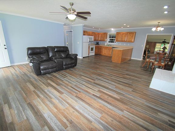 Peaceful home on almost an acre, just minutes from I-65. You will love sitting on your full front porch and enjoying the farm view. Great open floor plan with spacious livingroom with fireplace to warm by on those chilly nights. Chef's kitchen has plenty of cabinetry and counterspace. New flooring in grand room area with fresh popular grey paint throughout. Bring the kids and pets to enjoy fenced backyard. Storage building included. Watch the sun set on your covered porch. Move in ready!