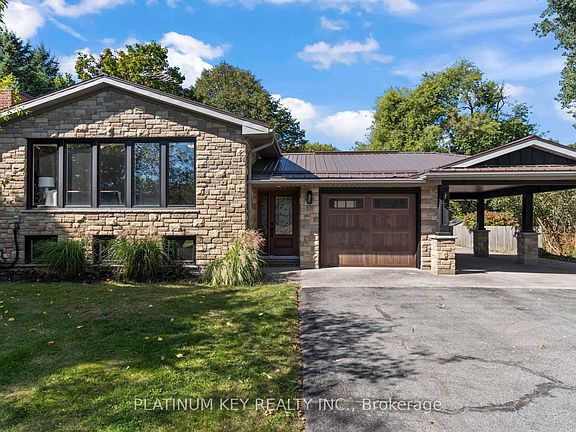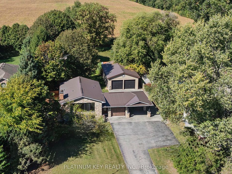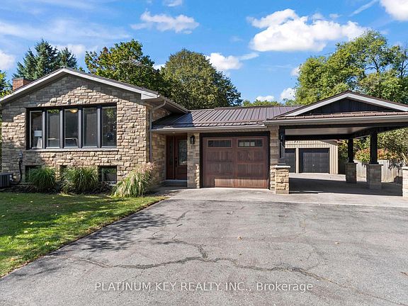 A one of a kind property! Spacious raised bungalow with atached garage, carport and a huge detached shop on over half an acre, backing onto peaceful farm fields in Mount Brydges. The well-maintained home offers 2+2 bedrooms, a beautiful 5-piece bath, and bright living spaces throughout. The main level features a large living room with hardwood floors and a wall of windows, plus a kitchen with concrete counters, gas stove, pantry, and walkout to a sunny side deck. The lower level adds two additional bedrooms, a family room, exercise area, and a dedicated laundry space. Outside, enjoy the large patio, mature trees, and plenty of green space for kids or pets to play. The impressive detached shop is fully equipped with hydro, water, heat, a 2-piece bath, fridge, and stove, ideal for a workshop, hobby space, or the ultimate hangout. Additional features include an attached single-car garage and a tandem carport for two vehicles. Quick and easy access to Highway 402, this home is located just minutes from Strathroy and London. Mount Brydges is a growing community with small-town charm, great school options, local shops, and parks, perfect for families and commuters alike.
