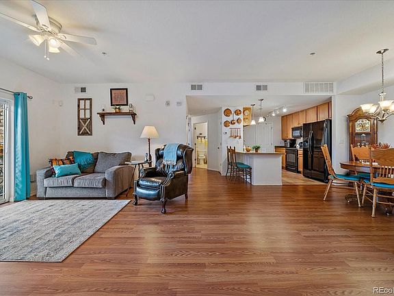 Welcome to your beautiful home nestled right at the foothills in southwest Littleton. With Hildebrand Ranch Park, Denver Botanic Gardens Chatfield Farms, Chatfield Reservoir and Deer Creek Canyon right out your door, you’ll be sure to settle out of the hustle and bustle. This bright and spacious ground floor condo with close-in garage is conveniently handicap accessible. In addition to spacious halls and doorways, many upgrades allow for complete efficiency. Prepare and entertain in your open kitchen boasting a new sink and faucet, cabinets with roll out shelves and a new refrigerator. Additionally, the dining and living room lead to a private patio, complete with storage room and a sunshade to enjoy your morning cup of coffee or a sunset drink. French door entry off dining room leads to a well-lit room that is multi-purpose... a non conforming 3rd Bedroom with closet in alcove could be a music room, office, or craft room. Well-designed with high ceilings, laminate floors, Bali blinds and ample storage throughout, the floorplan welcomes your everyday living. The primary bedroom boasts 2 large closets, an updated bathroom with raised toilet, tub cut-out and new fixtures. Consistent with accessibility, this unit’s laundry closet includes the washer and dryer and is outfitted with cabinets for storage. Wired for ADT security and a sprinkler fire system for your safety and security. This conveniently located condo with easy access can be yours to create a home at the base of the Colorado foothills.