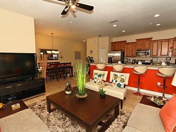 GREAT OPPORTUNITY AND INVESTMENT!!! Beautiful vacation in Paradise Palms, luxury and spacious townhouse with 4 Bedrooms and 3 Baths in Orlando Disney Area! Paradise Palms community is a private gated resort minutes from Disney World. You will have an amazing experience on your vacation relaxing at the 9,500 square foot Club House featuring a TikiBar & Grill, waterfall resort-style pool with a spa, and a pool slide for the family. It also has a movie theatre, game room, internet lounge, basketball court, tennis court, state-of-the-art fitness center & sauna, market, beach volleyball, and more.