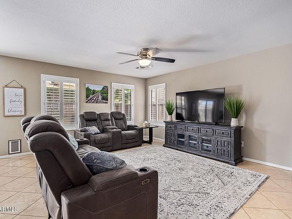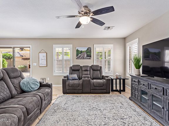 Situated on an Interior N/S Lot Featuring 3 bedrooms + loft with built In desk, great room floor plan with lots of tile and upgraded carpet/pad. Plantation Shutters and accent paint. Updated kitchen features granite slab counters, Island/breakfast bar, white cabinets w/hardware, pantry and stainless steel appliances. Convenient upstairs laundry room. Owners & guest baths feature granite counters. Step out to the extended covered patio with fans overlooking low maintenance landscaped yard, RV gate with concrete pad. Epoxy garage floor. Clean, updated and move in ready.