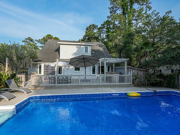 Great area on an oak canopied street draped in Spanish moss. This property has 4 bedrooms and 3 full bathrooms. 3 bed 2 bath in the main house and 1 bed 1 bath in the cottage, the cottage is studio style with 2 Queen beds and a bathroom, cottage also has outdoor sitting area. Private back yard with pool lined with palm trees. Kitchen with chefs stove. Big southern front porch shaded by a large oak tree. House has high speed internet and cable. 1/2 mile from great restaurants in Sandfly/15 min to downtown Savannah/30 minutes from the airport/30 min to Tybee Island beach. Total of 5 queen beds. This is a fully furnished rental with all utilities, yard care, weekly pool cleanings, pest control covered. No smoking inside property.