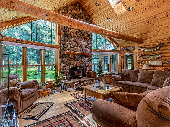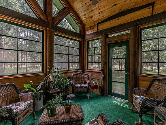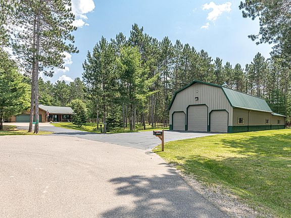 Five Parcels Included: WR-2148, WR-2149, WR-2150, WR-90-1, WR-2150-1. Exquisite 4 bedroom, 3 bathroom home with 36'x100' pole building now available in Woodruff. Three lots are part of the sale, providing excellent space and room for expansion. The pole building features two sections - A 36'x60' front section with extra tall door/deep concrete for RV parking, two other doors, and excellent lighting. The 36'x40' back section is insulated in walls, doors, floor, and ceiling and has heat/AC, floor drain, and workshop. The building is PERFECT for someone who needs space for year round work, toy storage, and extra space! The half-log sided home shouldn't be overlooked... three bedroom main level includes primary suite with bathroom/walk-in closet, two additional bedrooms, incredible great room with field stone fireplace, and three season sunroom. Downstairs is fully finished (except storage) and adds another bedroom, bath, and living space.