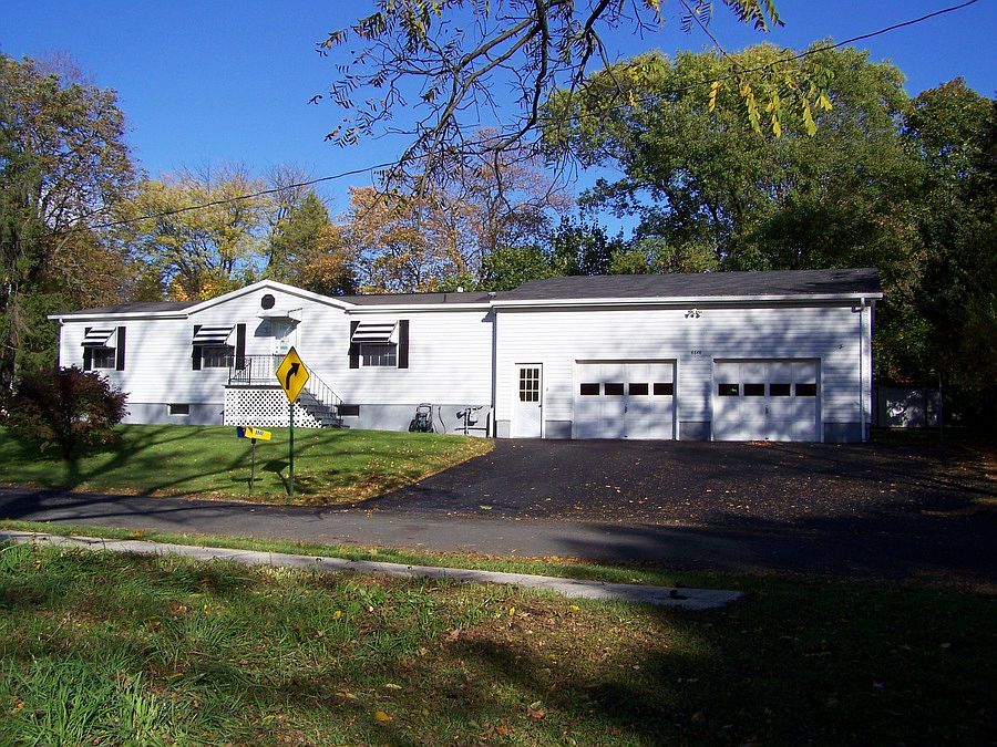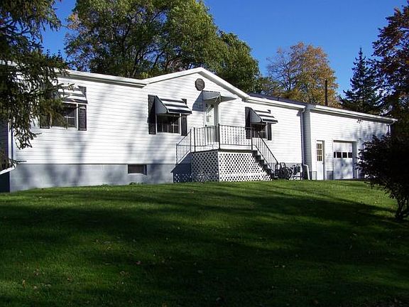 Village location - walk to town! 1996 Manufactured Ranch home - with FULL huge basement (walk-out to garage) and 2.5+ Car Garage addition (extra deep). Nice corner lot w/privacy. Shed. 3BR and 2 Full baths. Approx 1275 sq ft. 1st floor laundry with washer & dryer. Vaulted ceilings! Oak kitchen has new updated laminate wood style floor. Gas stove/oven & refrigerator included. Dinette area in kitchen with large window. Formal dining room opens to living room. Newer ceiling fan/light. Master suite with 2 large closets (deep), and full bath features 5' walk-in shower and full vanity; linen closet. Other two bedrooms are ample in size and have LARGE deep closets. Main bath has tub/shower. Forced air gas furnace and central air. Triple wide blacktopped driveway. Lot size approx: 133 x 105 corner lot. $99,900 Well cared for home!! Estate Sale - No rent to own or lease options. Call or text 585-314-5050 JOYCE