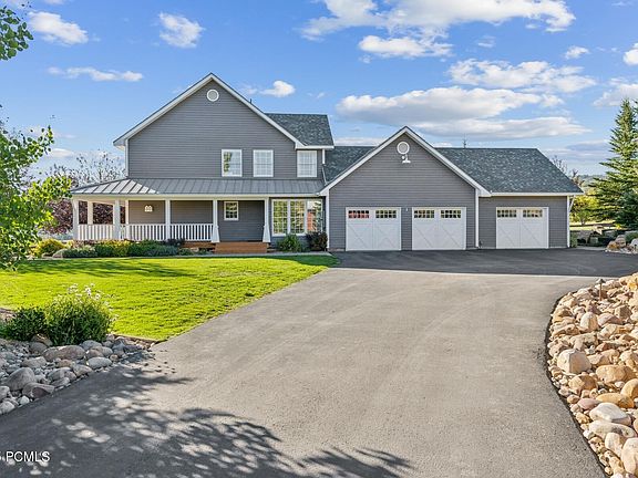 Welcome to the ultimate blend of country chic and modern comfort. Nestled on 5.36 acres of flat, usable horse property in Silver Creek, this picturesque retreat is framed by almost 100 mature trees, creating natural privacy and a storybook sense of place. From the moment you arrive, the inviting front porch sets the tone, offering sweeping mountain views and a warm welcome. Step inside to a crisp, gourmet kitchen featuring Viking appliances, a cozy breakfast nook along with a secondary sunlit space perfect for morning coffee or curling up with a book. The kitchen flows seamlessly into a spacious dining area and an expansive family room that opens to the backyard oasis, complete with a lush lawn, high-end landscaping complemented by extensive rockwork, and a dreamy patio ideal for fireside evenings under the stars. Upstairs, the primary suite offers a peaceful sanctuary, joined by three additional bedrooms. The walk-out lower level is just right for guests or entertaining, with a large family room, a kitchenette, a fun bunk room, and abundant storage. You'll find finished space in the garage, ideal for a home office, fitness studio, or music room. There is even a barn ready for horses, recreational vehicles or your next big hobby project. Whether you're drawn to the quiet country lifestyle, wide-open spaces, or simply want room to breathe and grow, this home delivers. Peaceful, private, and full of possibility. Designer furnishings negotiable.