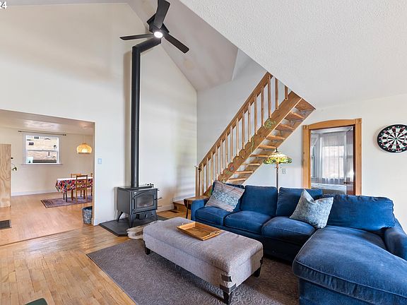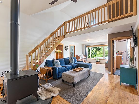 Spacious 4 bedroom main house with additional 2 bedroom apartment on lower level on an oversized lot in Kenton. So much opportunity and all the space you need. Bonus loft could be den/office? Large family room with wood stove. Dining room is perfect for dinner parties. Kitchen has eat-in bar, lots of storage and deck for summer barbecues. Fabulous yard has so much room for garden, entertaining and play + forage for Morel mushrooms. Views of Mt St Helens. Bike score = 97.