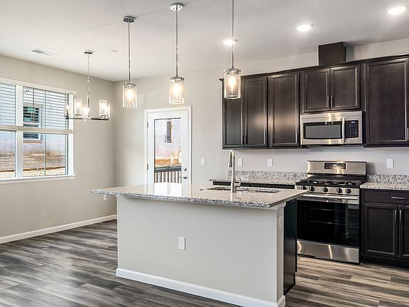 Chatfield Bluffs is an existing condominium community nestled up against the foothills and overlooking Chatfield Reservoir; with 100 brand new, zero maintenance homes currently under construction - consisting of 5 three-story buildings, each with 20 homes, being developed around an existing community clubhouse and outdoor pool area. The attractive price point of Chatfield Bluffs is ideal for new homebuyers that are tired of renting, or for existing homebuyers looking to downsize to a zero maintenance mode of living. This amazing 2 bedroom, 2 bathroom Riley floorplan consists of 1,125 square feet all on one level, with an outdoor balcony/patio area. This floorplan is on the 1st floor of each building. This particular home is on the first floor, facing west, with lots of natural sunlight. Beautiful LVP flooring in the kitchen, entry way, and Great Room. Each home comes standard with the latest technological advances and energy efficiencies, such as stainless steel Samsung appliances, LED lighting, video doorbells, WiFi thermostats, and tankless hot water heaters for today's more discerning homebuyer. *Photos and virtual tours are of model home (or similar home) and options and finishes will vary*. Each home comes with one detached one-car garage. Selling now from our On-Site Sales Center, open daily. Appointments are highly encouraged. Virtual tours are also available.)