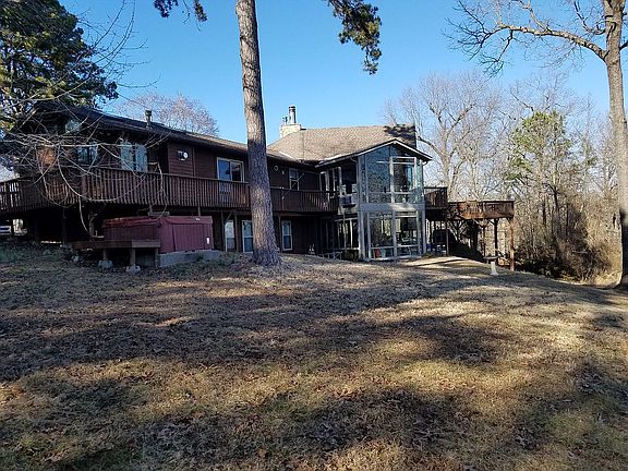 Secluded 4 bedroom home on 6.7 acres with walkout basement. Nearly all rooms have great views, overlooking Beaver Lake. Single slip private boat dock down a steep hill from house. Older home, built in 1976 and remodeled a few times since. Two sunrooms. If you do not find pictures on Zillow, look at Facebook NWA Marketplace or several real estate groups. There are several pictures of this house there.