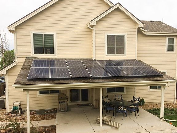 Remarkable Chatfield Bluffs home with rare owned, not leased, solar system. Welcome Home! Beautiful location, see front range from your master bedroom window every morning! Spacious with over 3100 total square feet! 5 beds, 3.5 baths. Creature comforts abound! Original owner and well maintained! Newer windows, carpet and roof, get extra peace of mind with the Buyer Warranty included! Enjoy the covered patio and professional landscaping out back! Not only save on your utility bill but you get cash back from the solar electricity system! Dog door to kennel in garage will keep pup happy! Professionally finished basement, with full bath and bedroom. Oversize 2 car Garage and much more. Lot s here for the price. Furniture can be included. Don't miss this one.