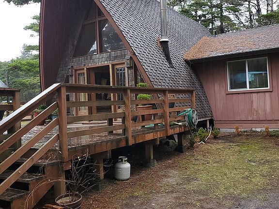 Gorgeous, luxurious A-frame just minutes from Heceta Beach. Dowel wood floors, newer roof, tile backsplash, stunning Pakistani onyx shower, spiral staircase to cozy loft, Jenn Aire range, large master bedroom, mud room, and attached one car garage. See to appreciate. Sold furnished at $285,000.