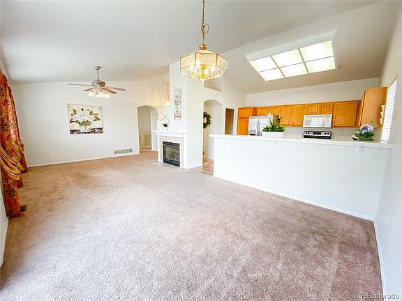 This beautiful ranch home features an open floor plan with tons of natural light and an amazing neighborhood that is easy walking distance to great schools and trails. On the main level of the home you will find a large living room with a gas fireplace, kitchen with all appliances included, breakfast bar, and a walk out dining room. Main level also features a master suite with an attached bathroom with a large tub, 2 additional bedrooms, laundry (washer/dryer included), and another full bath. Don't miss the large back yard with a storage shed and backs to open space, walking trails and Sand Creek. The basement is easily finished to add another bedroom and bathroom, as well as great storage space. New roof in 2016. New Water heater in 2017. New Garage Door opener in 2019.