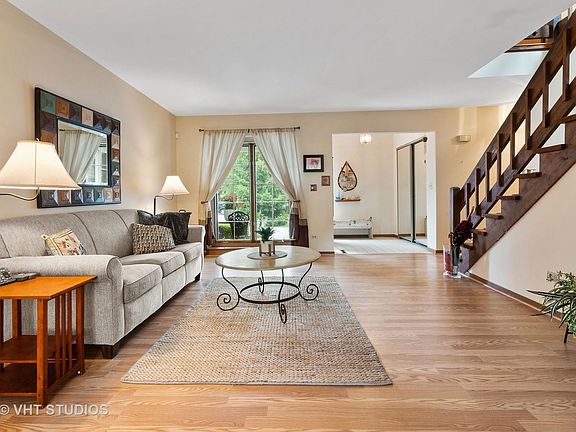 New Price!! This is a great opportunity to own this roomy townhome in beautiful Crystal Lake. Attention investors:Don't miss this townhome since rentals are allowed. Large open floor plan with three bedrooms and a loft, plus two full bathrooms and one half bath. The vaulted ceiling in the spacious family room with brick gas start fireplace gives an open feeling. Sliding doors overlook a beautiful park like backyard with private patio. Kitchen has been freshly painted and has a breakfast bar and table space. Large open living room opens to an adjoining dining room. Easy to maintain laminate flooring throughout main level. Convenient laundry room with storage right off the garage entrance with an updated half bath nearby. Upstairs a large loft area with new skylight and laminate flooring overlooks the family room and provides flexible space for an office, play area or additional guest quarters. Large primary bedroom includes full bath with new flooring, fresh paint, new mirror & large shower. There are two more bedrooms with carpet and another full bathroom with a walk-in shower, new floors, new mirror and fresh paint. Bring your ideas to make the huge basement into additional living space. Covered front porch, attached two car garage and paved driveway welcomes you home. Roof, sidewalk and skylights new in 2018. New furnace in 2020. Chairlift to second floor to be removed prior to closing. Crystal Lake offers top rated schools, live theater and musical entertainment, plus state of the art healthcare, restaurants, shopping, numerous recreational facilities and wonderful local parks and lakes. Quick close possible.