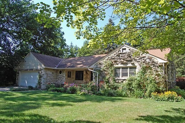 Enter this lovely tree lined street past manicured lots and arrive at your cottage in the woods! This stone ranch is nestled in cedars and cone flower gardens. It has 3 bedrooms and 2 baths in a split bedroom plan with sunroom, living room and eat-in kitchen. Most rooms have hardwood floors or wood laminate flooring. Tile bathrooms. Private low maintenance home! Laundry on the main too! Condo alternative! Prime location in Elm Grove, walking distance to village.