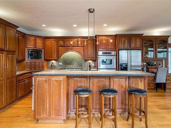 • Kitchen Features: Cabinets Stain, Eat-in Kitchen, Stone Counters, View to Family Room, Kitchen Island