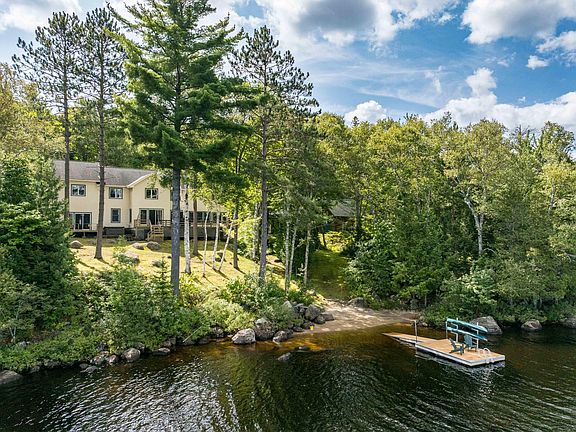 Nestled on a picturesque 1.3-acre lot along the shores of Long Lake, this expansive seven bedroom, three bath, lakeside retreat is a true haven. The spacious kitchen, dining room, and living room feature sliding glass doors that open to the upper deck, creating a seamless indoor-outdoor living experience with breathtaking lake views. An adjacent sunroom offers a tranquil space for relaxation. The first floor includes two bedrooms and a primary suite with direct access to a lower deck, which is outfitted with a hot tub. The amenities continue on the second floor with a great room, sauna, full bathroom and additional four bedrooms. This property also boasts a 3- car garage, workshop, tool shed and a private sandy beach complete with a floating dock; making it the ultimate year round lakeside escape.