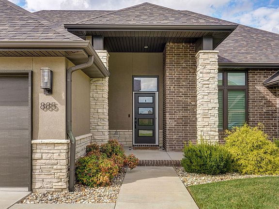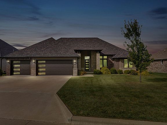 This beautiful 4 bed/2.5 bath home in the sought-after Village at Wicklow offers stunning curb appeal with a modern, single-story brick exterior, featuring a mix of dark brick and stone accents. The three-car garage with sleek, modern doors enhances its sophisticated look, and the welcoming entryway is framed by stone pillars, leading to a well-maintained front yard with tasteful landscaping. Inside, the cozy living room is centered around a stunning stacked stone fireplace, complete with a dark wooden mantel and a TV mount above, perfect for relaxing or entertaining. The living area blends rustic and contemporary elements beautifully, with dark wood flooring complementing the soft, warm gray walls. The kitchen is a chef's dream, featuring top-level Frigidaire Professional Grade appliances, including a gas stove, dishwasher and oven. White shaker cabinets, quartz countertops, a classic subway tile backsplash, and a stainless steel range hood create a bright, modern space. The kitchen balances traditional charm with contemporary style, ensuring both functionality and aesthetics. The split bedroom plan includes large, well-appointed bedrooms with tall tray ceilings, crown molding, and beautiful wood floors that extend into the primary suite. The primary bath offers a luxurious experience with double vanity sinks, a large walk-in shower with glass doors, and a hand wand. A convenient laundry room is connected to the primary closet, adding practicality to luxury. Additional features include a screened-in back patio with natural gas (Grill included), custom shades and shutters, added insulation over the garage, a mudroom with ample storage, upgraded landscaping, a partially floored attic, and a sealed garage floor. This home is a perfect blend of style, comfort, and functionality, ready for you to make it your own!