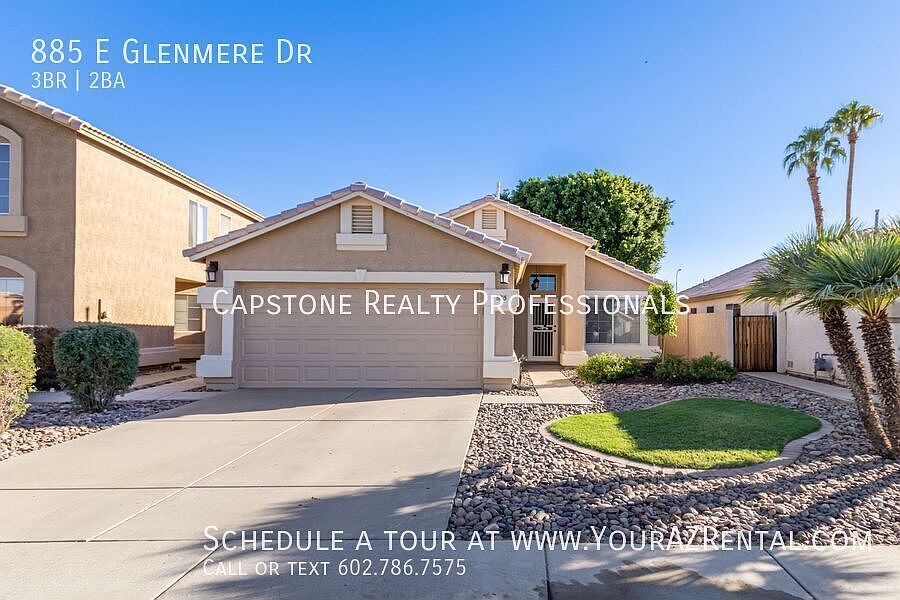 Welcome to this charming 3-bedroom, 2-bathroom home tucked away in Chandler, AZ. The spacious living room, with its vaulted ceilings, creates an open and airy feel, perfect for entertaining guests or relaxing at home. The eat in kitchen is fully equipped with all black appliances, an island for storage and meal prep, and a large pantry. The primary bedroom features a walk-in closet and a private en-suite bathroom with a relaxing soaking tub. To make life easier, this home also includes both washer and dryer, eliminating the need for trips to the laundromat. Step outside to enjoy your own private patio or the serene, fully fenced yard with plenty of shade provided by a mature treeideal for outdoor relaxation. The attached 2 car garage features built in storage, peg boards and a workspace! Perfect for the garage tinkerer. With easy access to the 202, this home offers the perfect blend of comfort and convenience. Don't miss the opportunity to make it yours. Contact us today to arrange a tour! -- Monthly Rental Tax Rate: 1.5% Monthly Tenant Benefit Package: $49.99 Security Deposit: Equal to one months rent Refundable Cleaning Deposit: $275.00 Refundable Pet Deposit: $200.00 per pet Built In Shelving Dryer Irrigation System Smoke Detectors Walk In Pantry Walk In Shower Washer Wood Flooring