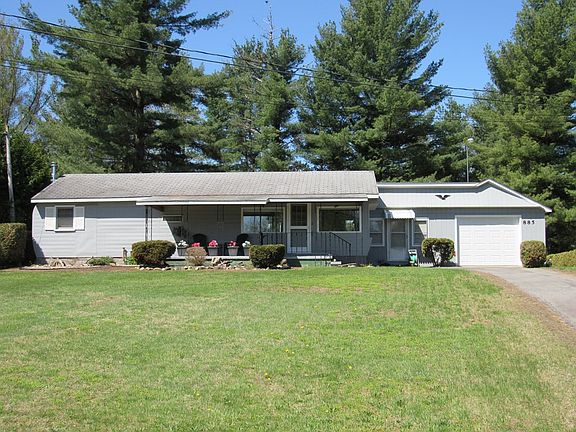 Move right in to this furnished home located in Mooers NY just a few miles from the Canadian border. Home has been seasonal but would work as a year round home as well. Two bedrooms, one full bath, covered front porch, enclosed breezeway to attached one-car garage. Most furnishings included, along with appliances, tools, lawn mower and other lawn care items. Original part of home is a single wide home with additions over the years that added master bedroom, larger living room, and enclosed breezeway. New septic in 2013, new chimney/furnace in 2010, and other updates.