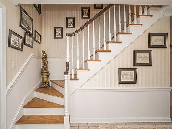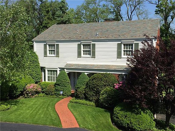 When only the finest will do! A Colonial brick walkway leads to the welcoming covered front patio of this Mac & Mac built, 3-BR, 3.5-BA home, with integral 2-car side entry garage. Beautifully landscaped, and offering a computerized irrigation system, the home is located in a sought-after Mt. Lebanon neighborhood and is convenient to award-winning schools, and Beverly Rd business district. Crown moldings, wainscoted walls, and elegant balustrade with richly toned handrails on the oak staircase to the 2nd floor greet visitors in the spacious foyer, also offering a guest powder room. Oak hardwood flooring is found throughout. The luxuriously sized living room and formal dining room have crown molding and chair rail trim. The custom-designed kitchen features ceramic tile floor, solid cherry Rutt cabinetry, a seamless, molded Corian countertop, dark glass appliances, and a built-in planning desk. The 1st floor family room has a pegged oak floor, beamed ceiling, and gas burning brick fireplace. The master bedroom has a walk-in closet, and tiled private bath with step-in shower. BdRms 2 and 3 are also found on the upper level. The full bath has tile floor and a combination tub and shower. The lower level game room has a wood-burning fireplace, beamed ceiling, and tile floor. The stylish lower level bath has granite countertop, tiled combo tub and shower, and radiant floor heating. A granite countertop surrounds the utility sink in the tiled laundry room. The covered patio off the family room features extension- and drop-awnings, quarry tile floor, and 2 ceiling fans. The lower patio features graceful arches outfitted with drop awnings. A built-in grill, and the same quarry tile and ceiling fans as those offered on the main level patio are found here as well. The garden space extends the architecture of the home through the integration of brick structures and landscape features including arches and terraces. The design style is southern Colonial, with an enchanting fountain as a focal point. A breezeway off the game room connects to the brick garden house, with stone accents, slate roof, copper trim, ceiling fan, and working gas fireplace with tile surround. The lower level of the gardens offers a brick garden shed with French drains, insulated walls, and a portico. A stone pathway leads to another archway with a wrought-iron gate, at the side border of the yard. A colonial brick-surround wall borders the entire formal rear perimeter of the property.