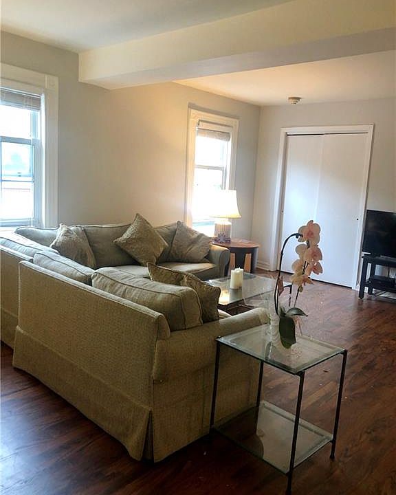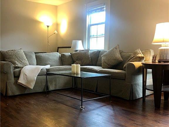 Light and bright apartment on 2nd floor of a small residential building close to Tilley pond and park. From the moment you enter this unit you will note the convenience of this amazing downtown yet quiet location. Neutral walls, spacious living room with decent closet space, leading to an updated eat-in kitchen. Linen closet in the hallway, full bathroom with tub and two good size bedrooms complete the picture. Master bedroom has ample space for a home office/work station. Bonus - door to the exterior in master bedroom for those appreciating fresh air! The unit comes with two permits for parking behind the Post Rd. Walk to train, Tilley park, stores & outdoor dining options. Beach permits available: The good life at an affordable price!