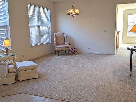 Don't Wait to Build New! Just Move-In to this Exceptional Ranch! Sunny & Bright! Located in Carillon at Cambridge Lakes is Pingree Grove's Active 55+ Adult Community. Cozy Porch Entry! This Expanded Camelback has all that you will need! As you enter the Foyer to the right a great Office/Den or 3rd Bedroom! A combined Living Room & Dining Room (If you need a larger Dining Room, there is another option by using the Florida Sun Room). An Open Concept Kitchen awaits with 36"/42" Birch Cabinets, a Large Pantry Cabinet & Great Island for Stools; the Family Room & Florida Sun Room (a $16,410 upgrade)/Dining Room with Sliding Doors to a fantastic Paver Block Patio with a decorative Circular Stone Wall. The Master Bedroom has been expanded from the original plan, a 10'x4'(apprx) nook a $6,710 Upgrade! The Walk-In closet is spacious, the Master Bathroom with a Walk-In Shower, Built-In Seat & Grab Bar, King Size Mirror, Cultured Marble Counter & Medicine Cabinet. Second Bedroom with a Spacious Wall Closet with Bi-fold doors. The Hall Bath has a Soaker Tub with Shower, King Size Mirror & Cultured Marble Counter. There are 2 Linen Closets, one inside each bath! Doorways are aprx 36" wide to help if you need to use a wheelchair throughout the home. Additionally Decorating this home: 9' Ceilings, Lots of Windows, Lighting, 1" Blinds for all Windows, Ceramic Tile & Carpeting throughout. Programmable Thermostat. The Laundry/Utility Room has a full-size Washer & Dryer & a Vanity Cabinet with Sink. A Great Garage with Door Opener with Key-less Entry Pad. Professionally Landscaped! Beautiful flowers have been planted by the owner for spring and summer enjoyment to the Right & Left of the home! Exceptional 55+ Community Awaits! This is a gated community with clubhouse, indoor and outdoor pools, Jacuzzi, fitness center, walking trails, golf course and more! Welcome Home!
