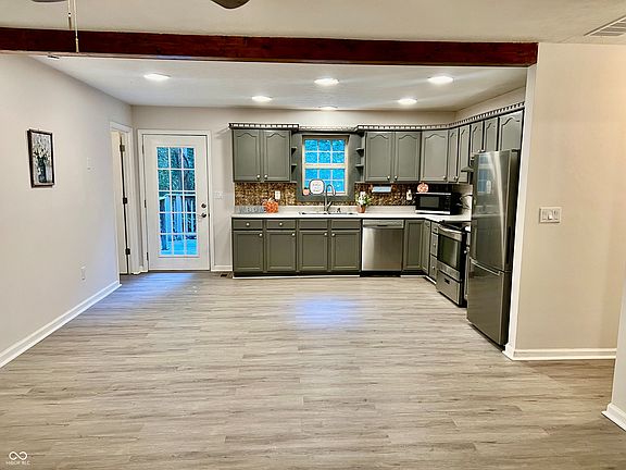 Welcome home to this freshly updated 2-bedroom, 2-bath home nestled on a peaceful 1-acre wooded lot offering a touch of privacy and nature right outside your door. With 1,557 sq. ft. of comfortable living space, this home perfectly blends modern updates with country charm. Step inside to find fresh paint, new HVAC system, new water heater, new flooring, updated bathroom vanities, and brand-new appliances-including a washer and dryer-ready for you to move right in. The new HVAC system and water heater provide peace of mind, while the 10-year-old metal roof adds lasting durability. Enjoy quiet mornings on your porch surrounded by trees or cozy evenings out back on the large deck, or indoors in your inviting living spaces. Located in the Jennings County School District and the desirable Hayden area, this home is conveniently situated between North Vernon and Seymour, giving you easy access to both towns while maintaining that serene, country feel.