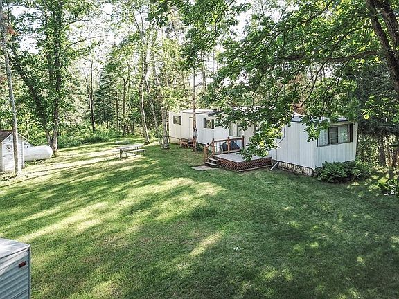 Here is an AFFORDABLE opportunity to buy a lake property on PREMIER Roosevelt Lake! 2 br mobile home situated on large level open yard with majestic view positioned high above the lake! 7.5 acre property extends across the road & through the woods to across a large wetland & pond to the eastern boundary. 195' lake frontage...extra wide lot! Enjoy this property as your "cabin" today just as the current owners have done knowing there is plenty of area to build a dream cabin lakeside and a storage building across the road for your toys! Roosevelt Lake is known for it's deep clear waters and GREAT fishing! Boat south into Outing and dock for gas, groceries, & more. Stairs lead from the level upper area down to the base by the lake. The dock has been placed at a spot with sandy shore and lake bottom. Catch fish right off the dock! Unique view of island across the lake!