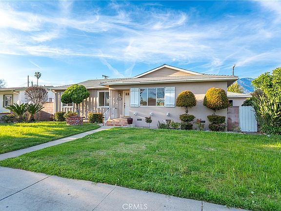 Step into this single-story home featuring 3 bedrooms, 2 bathrooms, and an inviting open floor plan. The bright and spacious living room welcomes you with a cozy fireplace and easy flow into the dining area, where a sliding glass door leads to the large backyard, perfect for indoor-outdoor living. The kitchen offers a charming eating area. Enjoy the convenience of an individual laundry room with a utility sink, while recent upgrades like fresh paint, new carpet, recessed lighting, and energy-efficient LED lights add modern appeal. Stay comfortable year-round with central AC. Outside, the expansive backyard features a covered patio and grassy area, ideal for entertaining or relaxing. The 2-car attached garage with alley access provides extra convenience. Located near top-rated schools, parks, and shopping, this home offers both comfort and convenience. Don’t miss out!