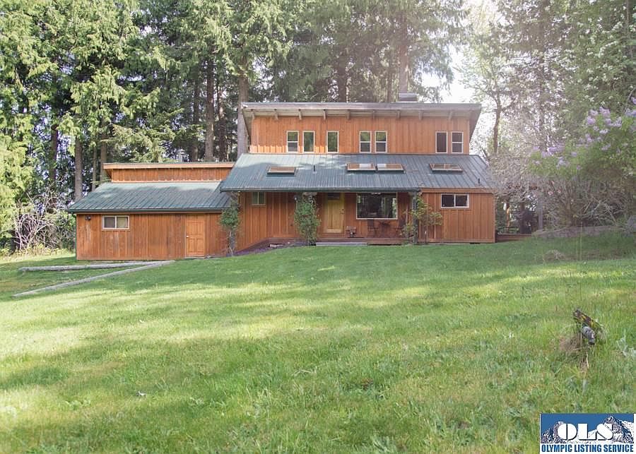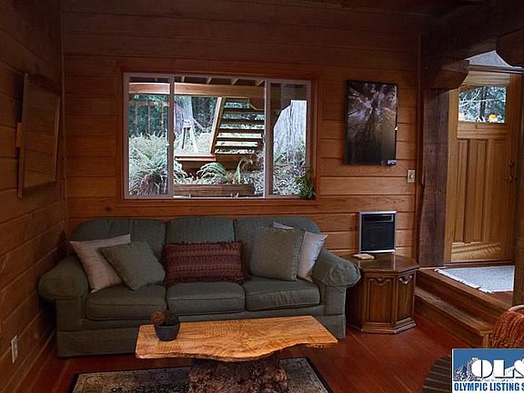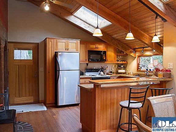 Relax in this rustic yet modern style home with it's cozy atmosphere, very private setting with an upstairs deck, 2 covered patios decks and a firepit. Trees have been removed to open up water view.