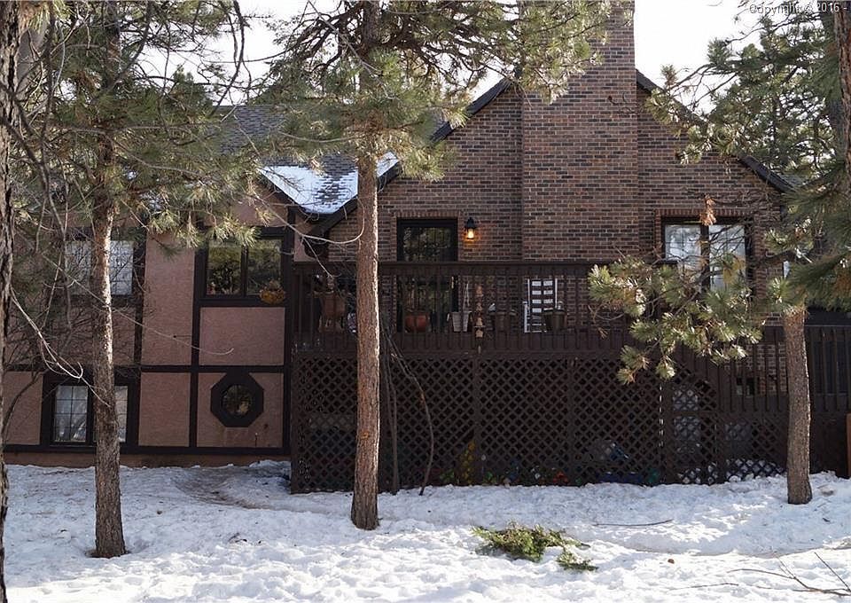 Great location in Woodmoor, this unique home is on close to an acre with mature trees and abundant wildlife. The home has vaulted ceilings and an open concept family room and kitchen area with a fireplace and walk out patio door. Natural hard wood floors and tile on the main level create a warm, easy space. Lots of room to cook together in the large kitchen with plentiful counter top & cupboard space and a convenient pantry. Enjoy meals at either your dining room table or outside on your large patio. Ready to move in! Brand new garage door, new vinyl windows, newly stained decks, and new carpet in the downstairs bedrooms. Maple cabinets and granite tile in the kitchen. Updated granite counter tops in both full bathrooms, new ceiling fans and light fixtures. Chimney swept in 2015.