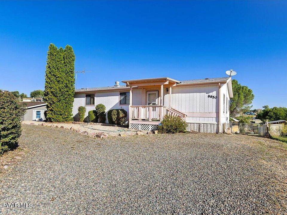 Centrally located in Prescott Valley, this spacious 3-bedroom, 2-bathroom mobile home offers an exciting opportunity to create your dream space. With a generous floor plan and a location that is convenient to shopping, dining, and local amenities, this home is ready to be personalized to your unique style. The open-concept living area provides plenty of room for family gatherings or cozy evenings in by the fireplace. The homes fully fenced back yard is perfect for outdoor activities, gardening, or creating your own outdoor oasis. With a little creativity and vision, this home could be transformed into the perfect space. Don't miss out on this opportunity to make this home truly your own.