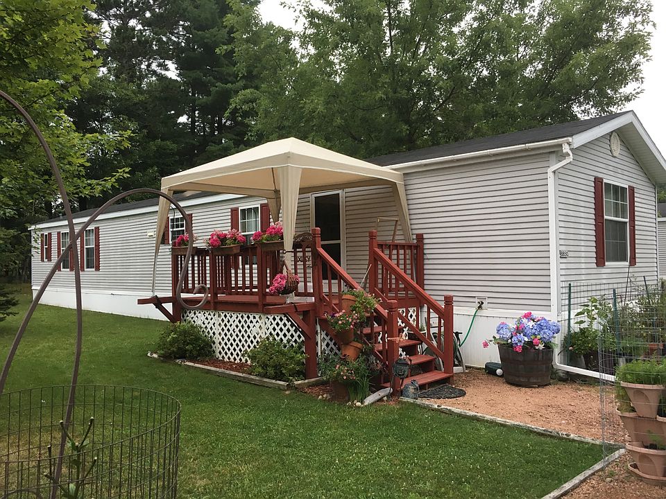 In Oneida County, northern Wisconsin: Very nice 2000 Dutch 16'X72' mobile home with deck, 2 BR, 2 BA, 2-car garage, +storage shed at Imperial Estates, 8850 Mossy Oak Dr, Woodruff, WI. Great neighborhood. Quiet. Great for birdwatchers. Large lot. Lot rent includes water, septic, trash/recycle, access to resident pool, clubhouse and storm shelter.