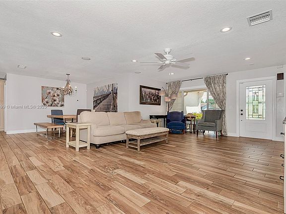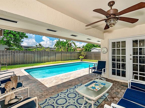 This fully remodeled 3-bedroom, 2-bathroom home is ready for a family to make it their forever home. Designed for comfort and entertaining, it’s perfect for hosting family gatherings, barbecues, and holiday celebrations. Step outside to a covered back patio overlooking the pool area — an ideal spot to enjoy your morning coffee or watch the birds. The stamped concrete driveway provides plenty of parking, while ALL IMPACT WINDOWS AND DOORS ensure safety and efficiency. Inside, you’ll find porcelain floors in the living areas and wood-look vinyl in the bedrooms. The home boasts a BRAND NEW ROOF (2025), beautifully remodeled kitchen and bathrooms, a tankless water heater, public sewer.