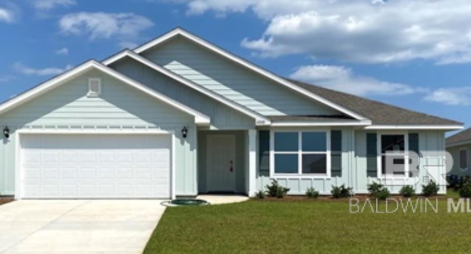 Discover the perfect blend of style and comfort in the DR Horton Cairn plan, a spacious 2,047 sq ft home nestled in the welcoming coastal community of Robert’s Cove in Foley, Alabama. This 4-bedroom, 2-bath residence offers an open-concept layout that seamlessly integrates the main living spaces, creating an ideal environment for relaxation and entertainment. As you step inside, you’ll find a bright, expansive living area that flows into a modern kitchen equipped with stainless steel appliances, granite countertops, and a large island that doubles as a breakfast bar. With ample cabinetry and a walk-in pantry, this kitchen offers both functionality and elegance, making it the heart of the home. The primary suite is a true retreat, featuring a sizable walk-in closet and an en-suite bathroom with dual vanities, providing a private and luxurious space to unwind. Three additional bedrooms offer versatility for family members, guests, or home office needs. Outside, a covered patio awaits, offering a tranquil spot to enjoy the coastal breeze or entertain guests. Robert’s Cove is ideally situated just a short drive from the beautiful Gulf beaches, as well as shopping, dining, and recreational options, allowing residents to enjoy the best of the Gulf Coast lifestyle. With its combination of coastal charm and modern convenience, the Cairn plan is perfect for those looking to embrace a laid-back, vibrant community. Don’t miss the chance to make this exceptional home your own—schedule a private tour today and experience all that Robert’s Cove has to offer! Buyer to verify all information during due diligence. ***Pictures are of similar home and not necessarily of subject property, including interior and exterior colors, options, and finishes. Buyer to verify all information during due diligence. ***