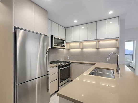 Welcome to THE PEAK by Intergulf on Burnaby Mountain. This 2 bed 2 Bath unit, with the breathtaking views over Burrard Inlet. Just steps away from the finest lifestyle, SFU, Elementary school, Montessori, bus loop, Starbucks, Tim's, Nestors, restaurants and more all within 5 minute walk! This functional layout unit features open concept living/dining/kitchen space to enjoy. Laminate throughout (incl. bedrooms), Amenities include an exclusive 2 storey gym/wellness centre, yoga studio, conservatory study space, party room & an outdoor terrace w/ gardens, benches, BBQs, ping-pong & kitchen. Guess Suite for your family or friends come over. Open House Sunday Oct 5th 2-4 PM
