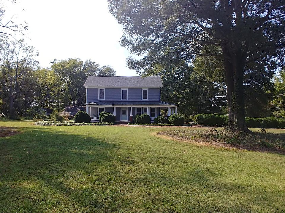 Newly renovated 2-story farmhouse for rent on 2 acres of land. Shown by Appointment Only Apply Through Zillow or via Paper Copy ($50 application fee via paper copy) Background Check and References REQUIRED Serious inquiries only. This beautiful historic farmhouse features original heart-pine hardwood floors throughout and 6 all-brick fireplaces. For ease of use two of the fireplaces have been converted to natural gas logs. With 4 bedrooms (3 upstairs and Master Suite downstairs) and 2.5 baths this home is perfect for families. The galley kitchen boasts custom wood cabinetry and includes all appliances (Microwave, Double-Oven/Stove, Dishwasher and Refrigerator) The mudroom/laundry room comes with ample shelving and front-loading washer and dryer. The entire home is complete with fresh paint both inside and out and the numerous, oversized windows allow for plenty of natural lighting. The wrap-around porch is perfect for entertaining, grilling or just relaxing in a porch swing. HVAC is a gas pack for downstairs with a regular electric heat pump for upstairs; Well water with water softener system. Options for yard maintenance available. Home is located in the highly desirable Cox Mill High School, Odell Elementary School and Harris Road Middle School districts. Also close to desirable shopping, restaurants, banks, etc. Renter is responsible for Trash, Gas and Electric bills. Home is on a well and septic system so no monthly fees for water or sewer.
