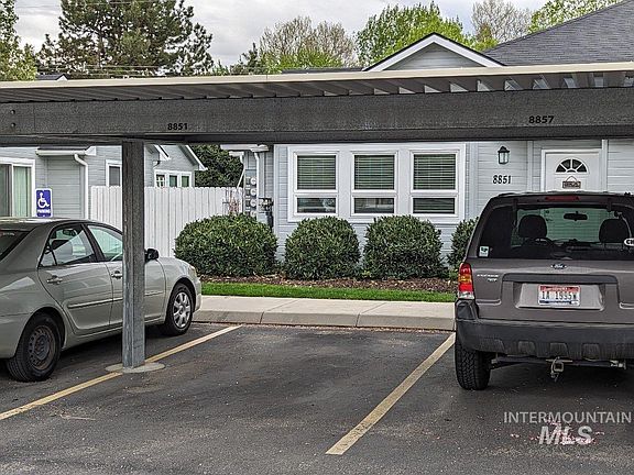 Great Central Boise Location and close to everything! This nice single story condo has been recently updated with new laminate wood look flooring, sinks, faucets, paint inside and out. Designated parking in covered parking spot right outside your front door.. Private side patio and close to community pool. Large master bedroom big enough for king size bed and huge walk in closet. Fireplace in lving room. Dead end culdesac location with no drive by traffic. smaller complex and very convenient to freeway and shopping. HOA fees cover water, sewer,trash, snow removal, pool and exterior maintenance.