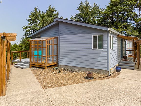 Introducing a stunning private manufactured home located just 2 blocks from the beach and just a few minutes to Old Town Florence. This home has the perfect location, on a quiet dead end street, featuring three bedrooms and two baths. This updated home offers a spacious living environment perfect for relaxation and entertainment. It has been completely updated in the last few years. New siding with vapor barrier, new interior and exterior paint, new roof, new energy efficient vinyl windows and sliding doors. New Trex decks and porches with UV Suntuf covers. The living area is a comfortable and inviting space, ideal for unwinding after a day at the beach, the kitchen has ample counter space and great storage, making entertaining easy and enjoyable. New flooring throughout makes this home the perfect move-in ready beach retreat, vacation home, income property or full time living. Outside you will find a new UV Suntuf carport, privacy arbor, graveled RV/boat parking and 2 new sheds, one for storage and the other being used as a studio. Located just a short walk to the beach you'll have easy access to miles of sandy Heceta Beach, allowing you to indulge in beach activities, walks along the coastline, and breathtaking sunsets. Come see what easy beach living is all about.