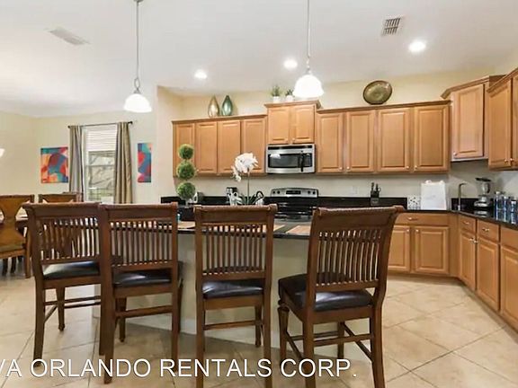 Large 6 Bed / 5 Bath Fully Furnished House w/ Pool - Fully furnished 6 bedroom, 5 bath pool home in the Paradise Palms Resort. It is located close to theme parks, restaurants, shopping, and schools. PERFECT for families relocating to Florida. Having over 3,000 sqft there is plenty of room for the family. The large open kitchen, spacious living room and 1 bedroom make up the first floor. Upstairs you will find 5 more bedrooms and a second living area. A very impressive clubhouse features a large community pool with waterfall, spray jets, a Jacuzzi, tennis, volleyball, basketball courts, a fitness center, a games room, a children's play area, a convenience store, Tiki bar, and a 50 seat cinema. (RLNE6288770)