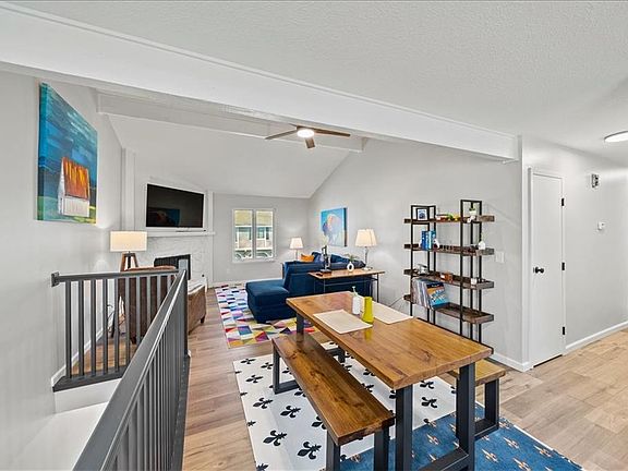Outstanding renovated townhome in Millcreek Run! Vaulted ceilings in entertaining area, updated lighting, and luxury vinyl plank flooring throughout. Kitchen features beautiful painted cabinets, tile backsplash, quartz countertops, stainless steel appliances, black stainless steel vent hood and floating shelves. Newer vinyl windows and A/C. HOA paid for the new roof and new exterior paint in 2020. Laundry closet is off hallway near bedrooms and washer is new. Single car garage has two extra storage areas. This neighborhood is well located, with easy access to shopping, highways, and restaurants. It's very close to the 50 acre Sar-Ko-Par Trails Park with the Legler Barn Museum, several sport courts, nine hole disc golf course, skate park and fishing lake. Come see this super sharp end unit, offering all the advantages of a "lock and leave" lifestyle and entertain on the deck with a view of the neighborhood pool.