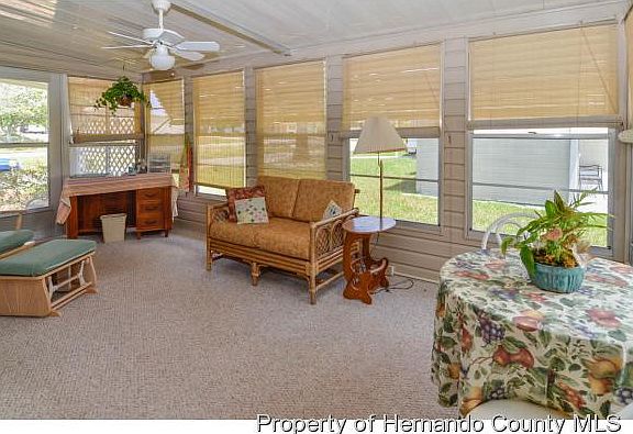 Great curb appeal, double-paned windows. Feautures TWO GLASSED-IN FLORIDA ROOM. Hard to find 3 bedroom golf course home. Large utility room. Light and bright.-----Located in popular 55+ community where you OWN YOUR OWN LAND. Community amenities include tennis, heated pool, horseshoes, bocce, community center, pickle ball and more. Located near major medical facilities, shopping and restaurants.